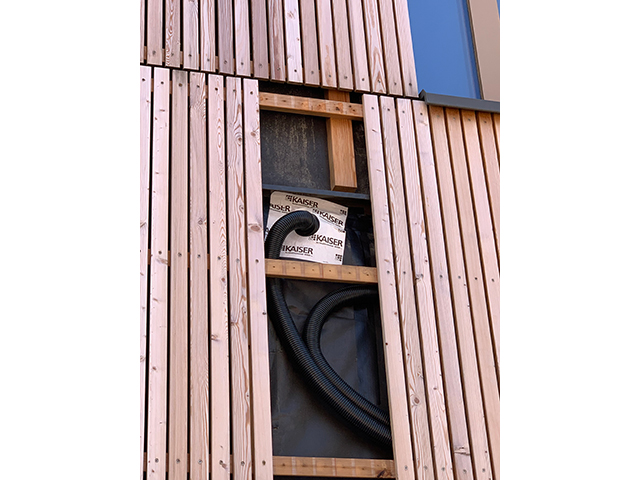 HoHoは、セ―シュタットの地下鉄の駅前に立つ木を中心とした高さ84mのビルである。建物のコアはコンクリートだが、柱、壁にCLT(ひき板を並べた層をクロスに重なるように板を貼り合わせた木の塊のような木質構造用材)を「レゴのように組み合わせ作る」。低層のものは7週間でできたという。外壁も木を使っている。
